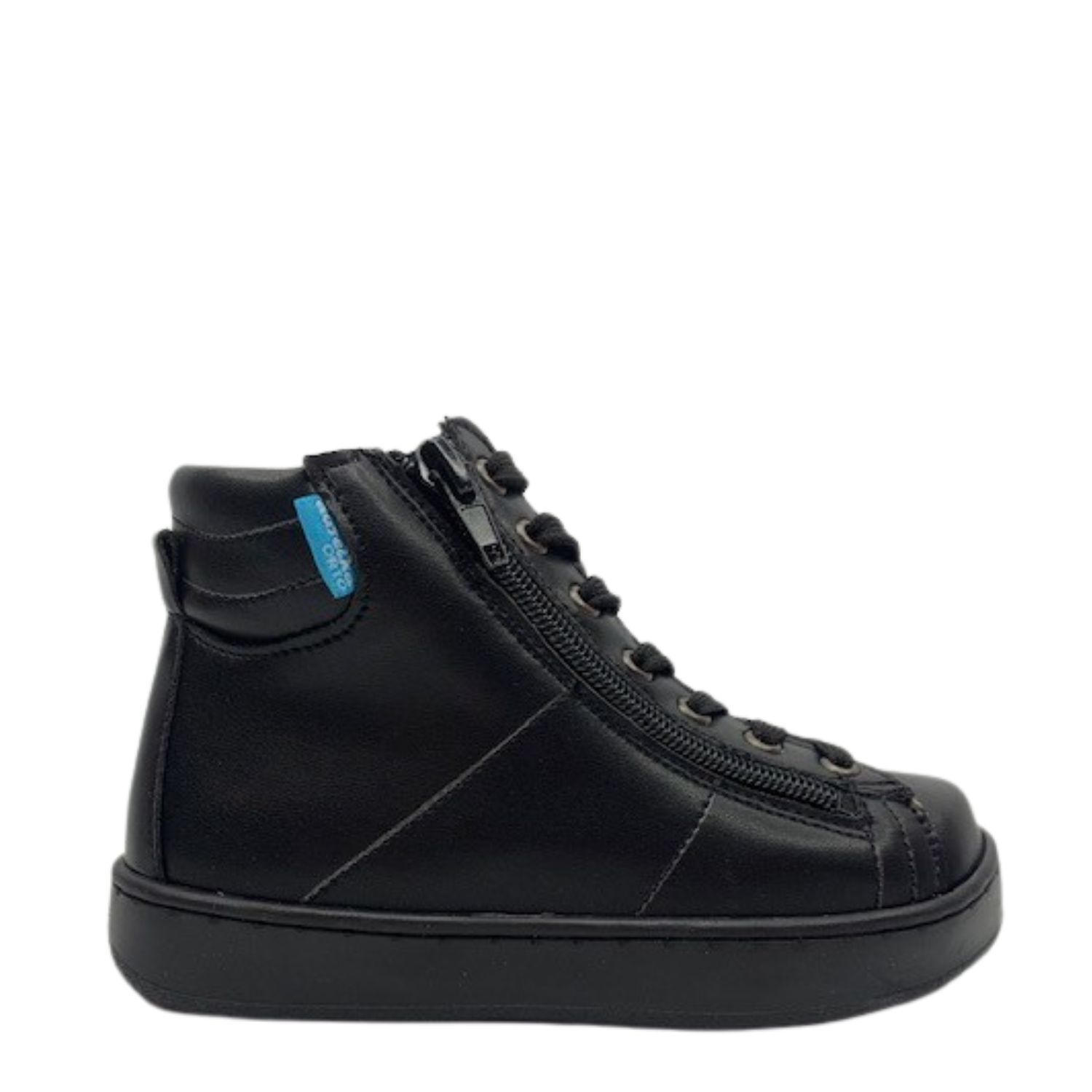 The AurelkaORTO 1075 Ephyna orthopedic sneakers deliver exceptional ankle support and all-day comfort for active children. These premium black high-top sneakers for kids are expertly designed to protect and stabilize developing feet during sports and daily activities. The innovative dual-zipper system combined with traditional lace closure ensures quick, hassle-free wear, while the advanced ankle support technology helps prevent childhood foot injuries and promotes healthy foot development. Built with a durable white platform sole and elegant suede detailing, these children's orthopedic shoes seamlessly blend performance with style. Perfect for active kids who need reliable foot protection, these high-top sneakers with ankle support are the ideal choice for parents prioritizing both comfort and foot health in their children's athletic footwear.