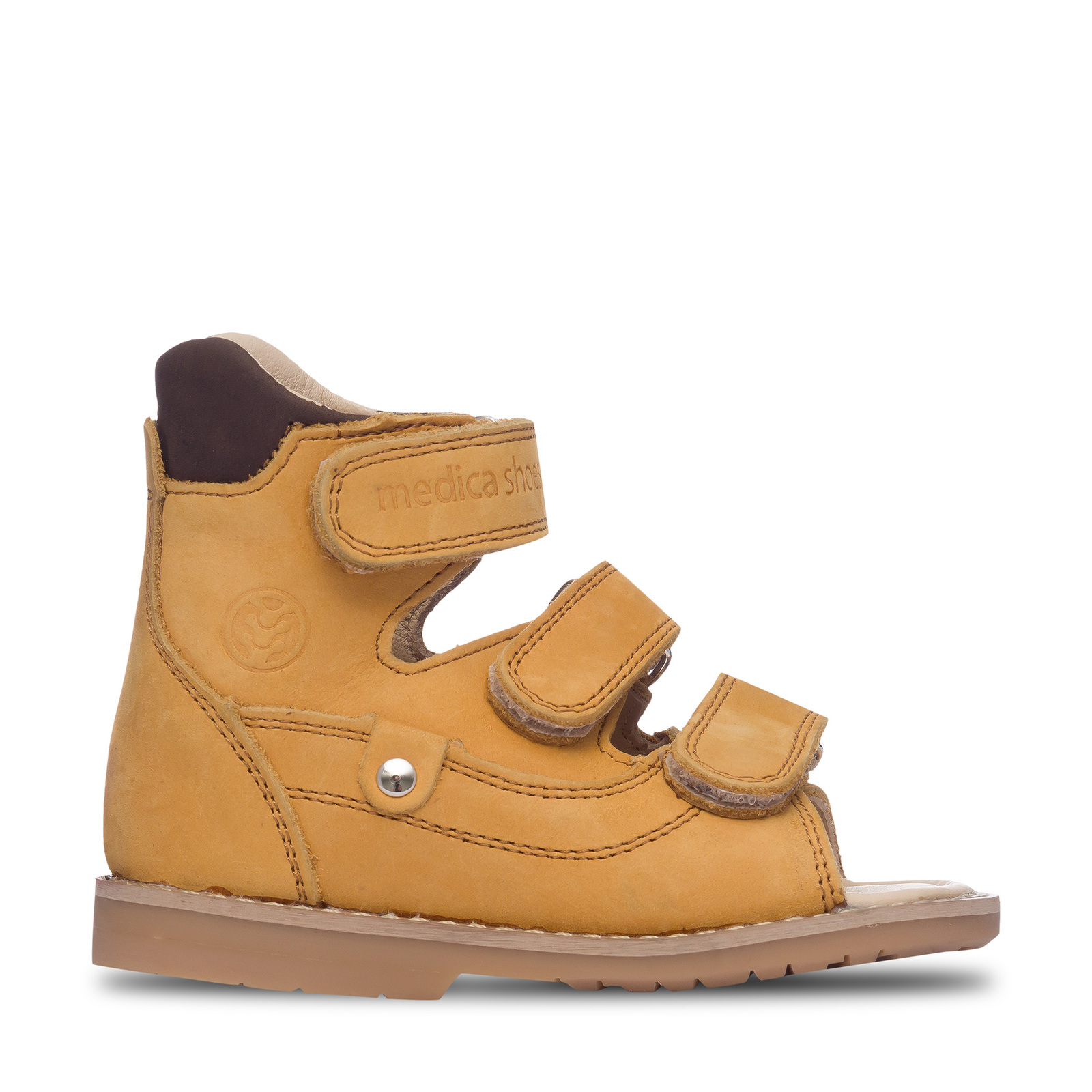 The Medica Chicago sandal is intricately crafted to provide orthopaedic support, particularly for children requiring additional ankle stability. It includes an extended high stiffener for increased ankle support, a Thomas Heel for extra rearfoot support, and is made of real leather with a wax coating, ensuring durability and strength. These sandals are perfect for children needing reliable ankle support and improved mobility during the sunny summer months.