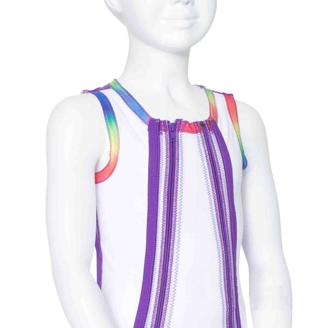 SDO® Original is a custom-made medical device crafted from Lycra® fabric (Class 1). The DZ Suit aids in enhancing shoulder, trunk and pelvis postural control, while also improving sitting and standing posture. The double zip provides an option that makes the application and removal of the garment easier as well as enhancing the handling of child or adult around the crotch area. The SDO® Original DZ Suit is a custom garment designed to enhance cutaneous and proprioceptive feedback while offering musculoskeletal support and torso alignment. By selecting from a variety of reinforcement panels, garment options, and themes, the desired outcome can be achieved effectively.